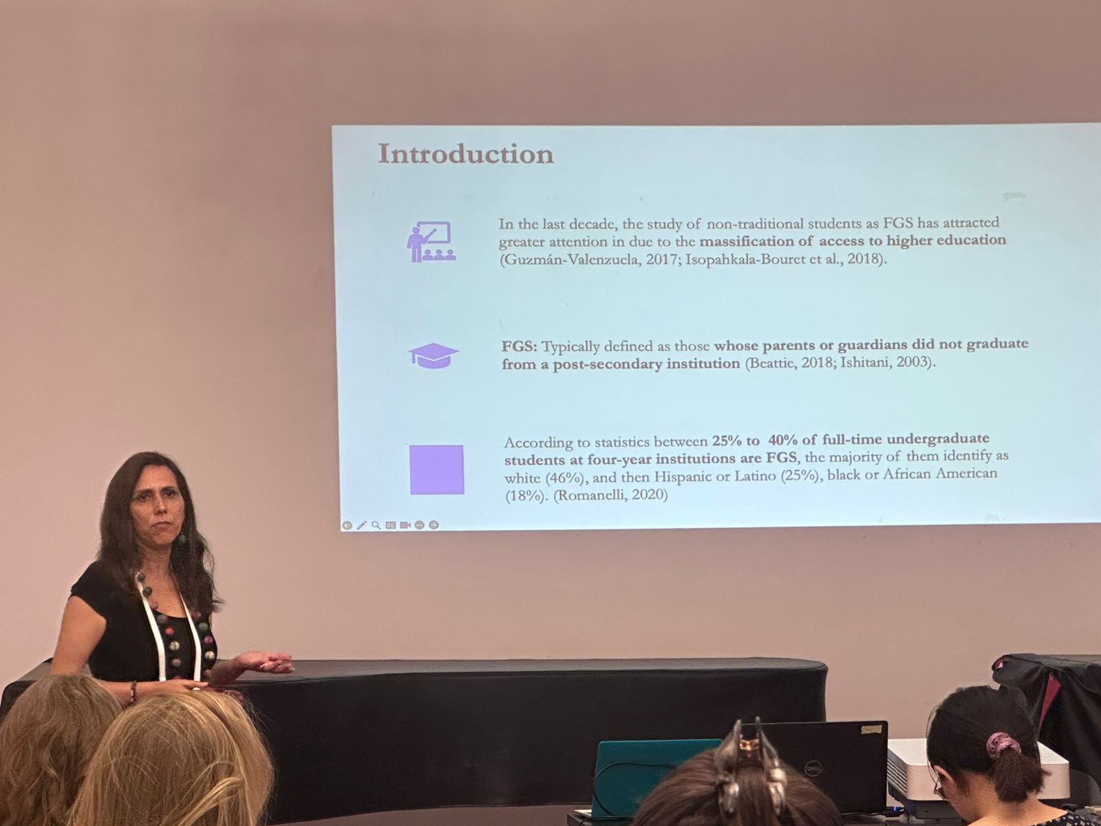 En su ponencia titulada “Hidden Curriculum in Chilean Universities: The First-generation Students' Experiences”, la académica presentó los resultados de una investigación que explora cómo el currículum oculto en las universidades chilenas influye en las trayectorias y experiencias de los estudiantes de primera generación universitaria, quienes son los primeros de sus familias en acceder a la educación superior.